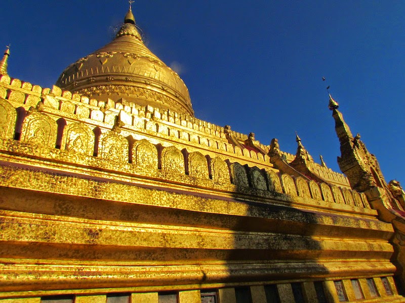 This temple was built in the 11th century and is one of Bagan's oldest temples. It is a stunning 160 feet (49 meters) high circular stupa that was built of stone bricks and covered in gold leaf. Over the years this temple has been damaged by numerous earthquakes and has been restored. This pagoda enshrines Buddha relics and is an important pilgrimage site for Buddhists. It is the most beautiful temple that we visited in Bagan.